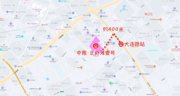 中粮·北外滩壹号位于北外滩提篮桥风貌区,大家关心的监狱已经搬到青浦,步行到4号线12号线大连路站只要400米。