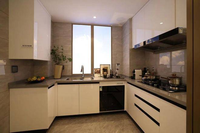 入户即是独立玄关,大尺度U型厨房,三开间朝南的全飞机户型设计,几乎没有多余的面积浪费。