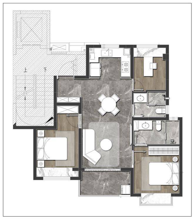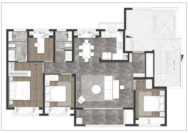 对于二人情侣,是安放衣物与家庭办公的温馨空间,衣帽间、书房、学习,充分满足二人生活的多元生活。面对三口之家,可以从婴儿房进阶为儿童房,伴随年龄结构的变化,而不断调整自己的定位。