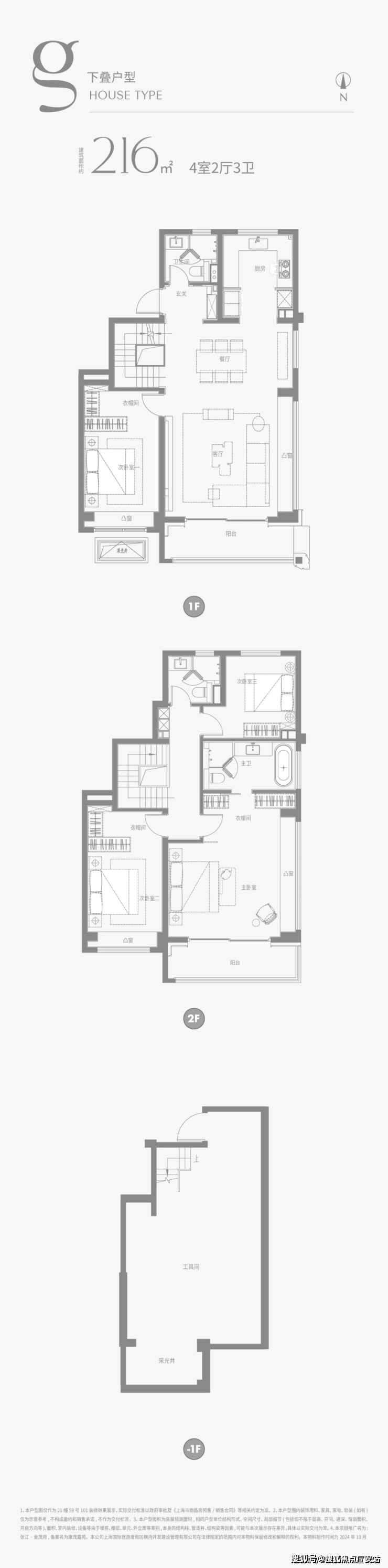 建面约216m²下叠户型图: