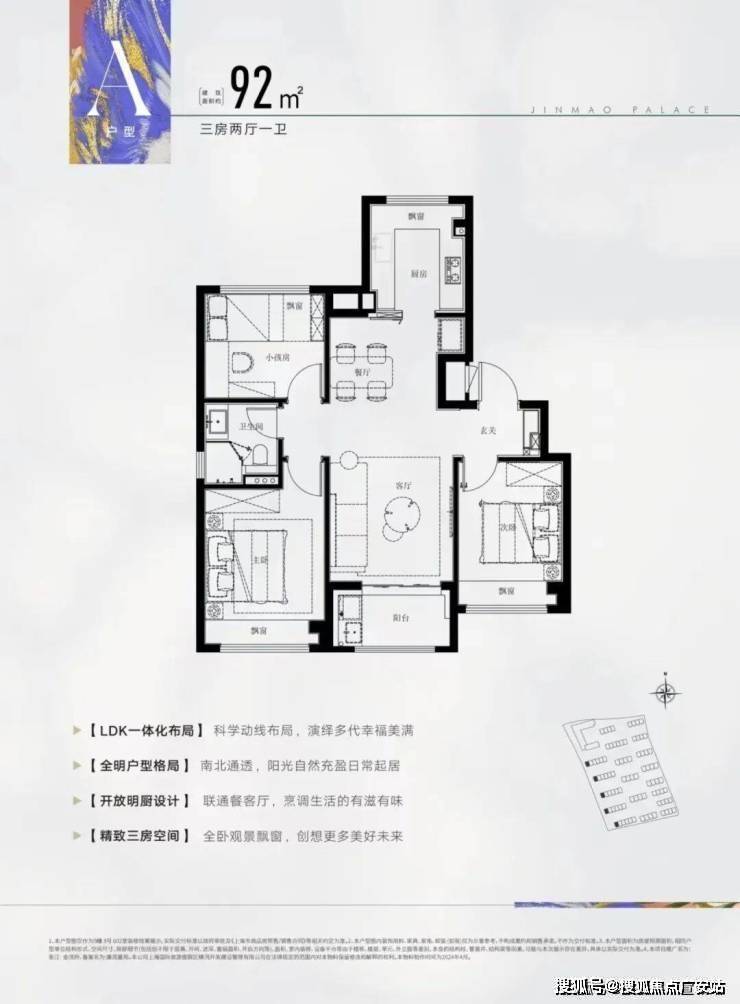建面约92㎡3房2厅2卫