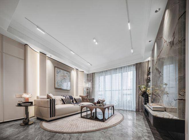 背景墙比别人更多一点。天然石材的电视背景墙,高级大气;编织皮革的客厅背景墙,充满质感;过度用的是白色木饰纹的背景墙,简约耐看;餐厅处又是白色皮革背景墙,大方优雅。整个空间过渡自然,增加了层次感和高级感。