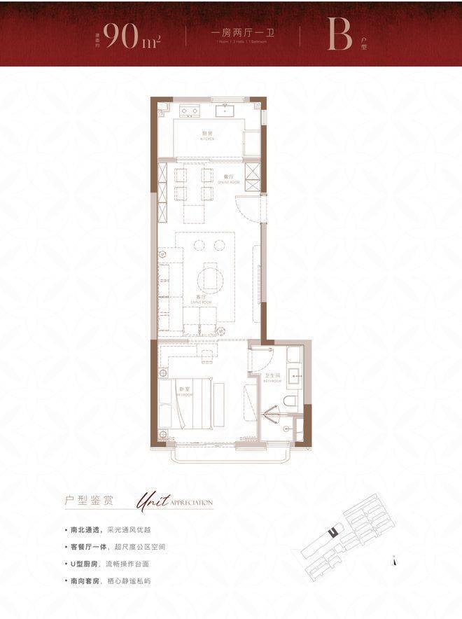 建面约90m²尊享1房户型,在100m²的基础上,进一步降低总价门槛的同时,也带来了设计上针对实用性的小巧思。