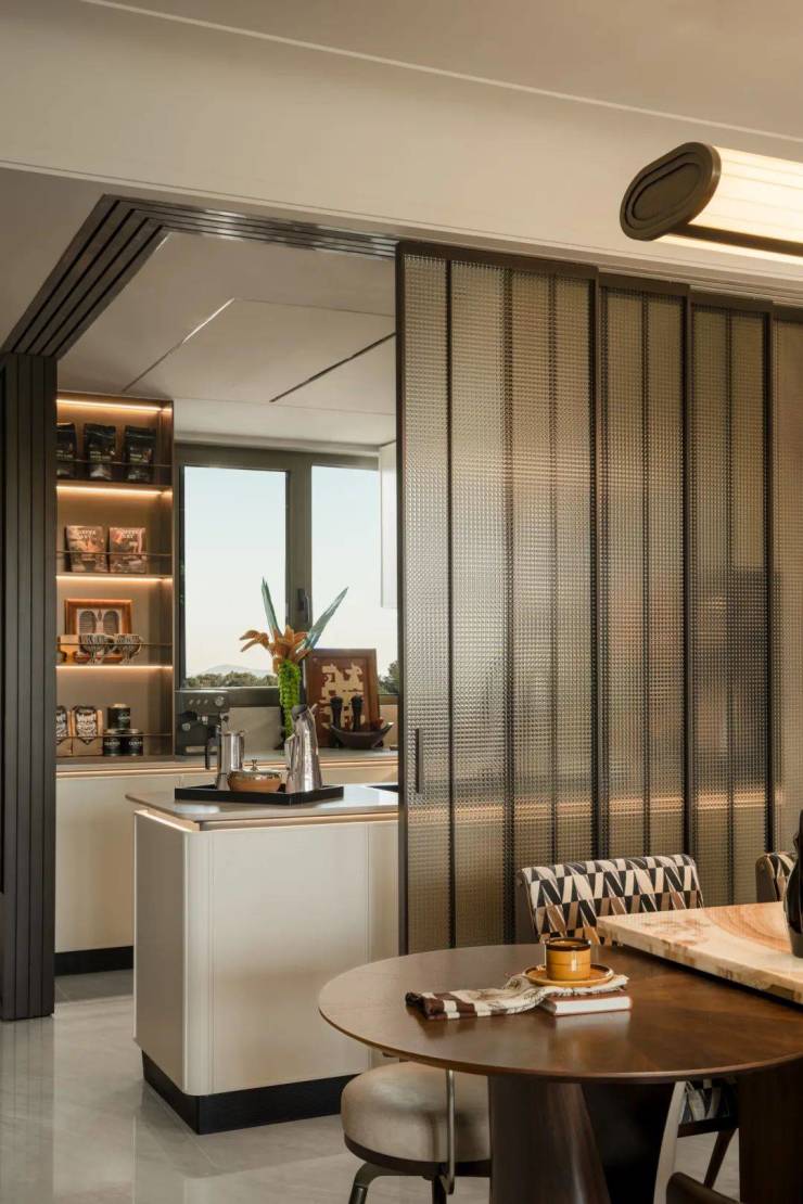 除此之外,保利天奕还引入全屋智能系统,无论是通过手机APP远程调节灯光色温、开关电器设备,还是以语音指令唤醒灯光、开合电动窗帘,或预设归家、离家等智能场景模式,都非常方便,将科技与生活无缝融合