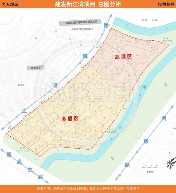 地块整体限高 40 米,实则以规划虚线为界形成差异化管控:北侧区域限高 40 米(对应不超过 13 层建筑),南侧大部分区域限高 20 米,形成北高南低的天然地势落差。