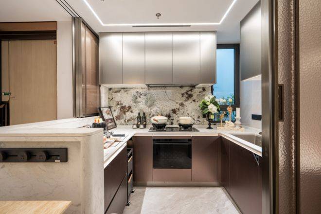 厨房:集成方太净洗中心与嵌隐升降烟机,将清洗与净烟效率最大化。