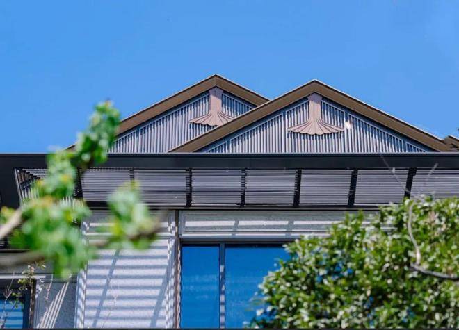 形制:宋式三段式立面、深檐挑角、东西双向宋风窗扇、歇山顶(联排),每一处线条都透着宋式建筑的清隽风骨。