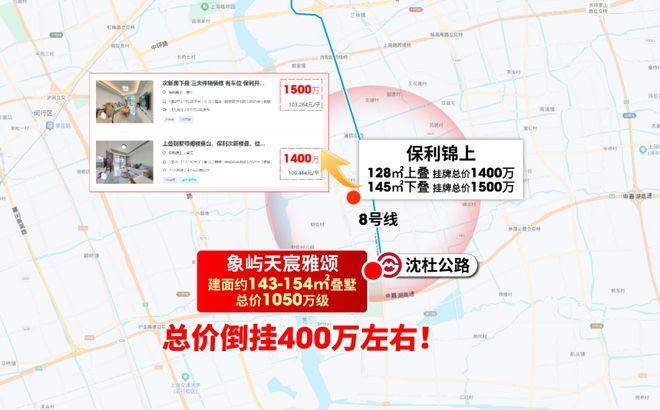 据链家网显示,项目旁边类似的轨交墅保利锦上项目,二手的上叠要1400万,下叠要1500万!