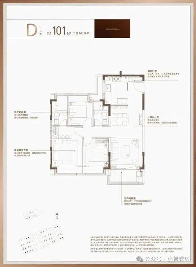 以主力建面约101㎡3房2卫户型为例,得房率高达约80-81%,实际使用空间高达约80-82㎡,甚至超过了市面上部分洋房产品。
