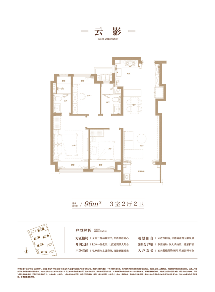 建面约96㎡3房,充分从居住者的角度考量生活动线、舒适度与生活感。S型的分户墙,褪去呆板,为家具预留更多的空间;LDK一体化的设计打破空间局限,解锁更多的生活场景,也拉近家人间的距离;主卧套间自在独处,生活的优雅时刻尽显……