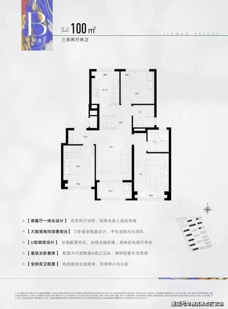 建面约100㎡3房2厅2卫