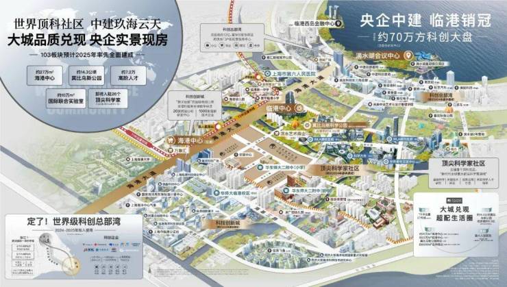 项目位于浦东新区临港新片区103 顶科社区核心,紧邻世界顶尖科学家论坛会址,央企中建玖合打造,约 70 万方全能生活大城,超低能耗、绿建三星品质,实景现房在售。