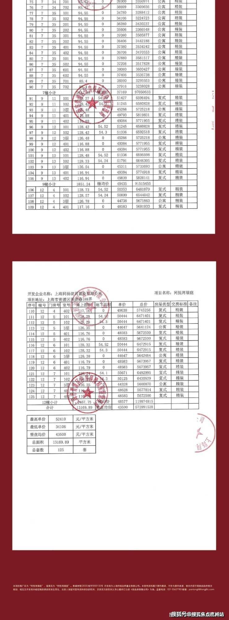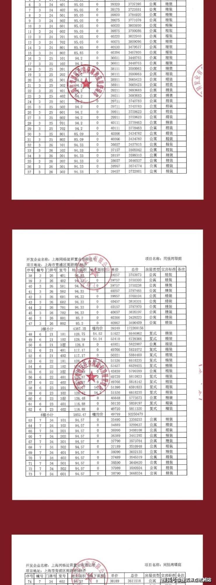 一房一价表: