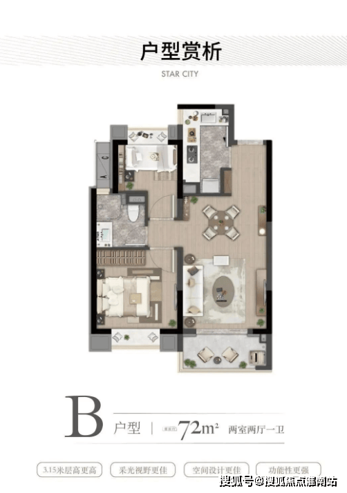 ·建面约72㎡2房:大虹桥非常臻稀的小户型,总价仅约422万起,不仅是优秀的自住过渡产品,更是低总价撬动大未来的资产配置利器!