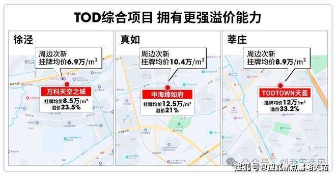 √遥遥领先的溢价能力:相比普通楼盘,TOD综合项目本身更有溢价,也更保值,像莘庄天荟、万科天空之城等都已给出了更有说服力的结论。