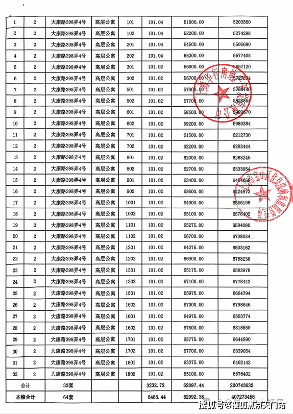 大华公园柏翠项目一房一价表▼