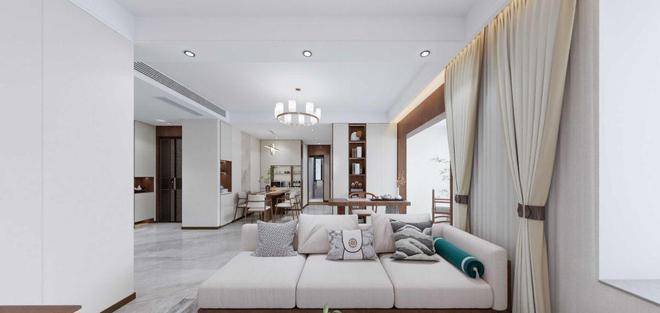 客厅做了灵动处理,可以做为大横厅使用,彰显气派,配上南向的宽景大阳台,显得十分明亮。