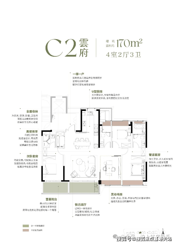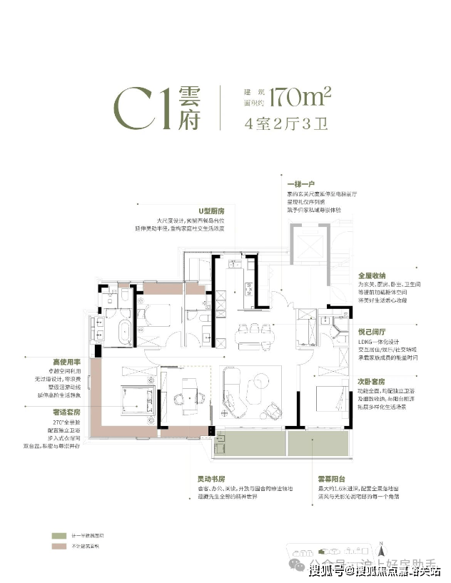 大平层的附赠满打满算最多就有20个㎡。而反观翡雲悦府·悦墅建面约210-215㎡的别墅产品,附赠面积最高约200㎡以上。