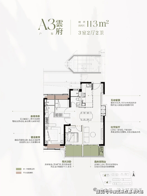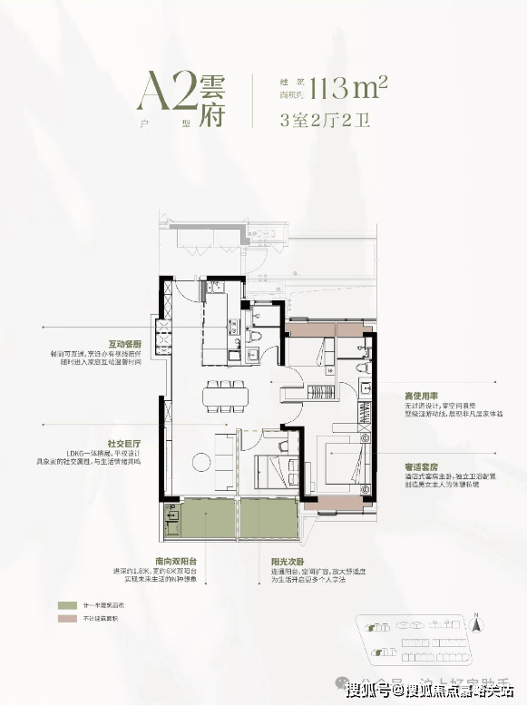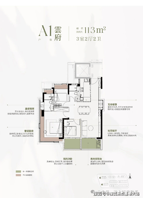 建面约113㎡3房168套