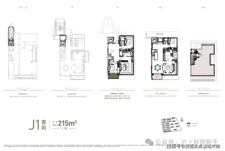 建面约215㎡上叠:屋面+庭院+地下室+露台+阳台的整体附赠空间约110㎡;
