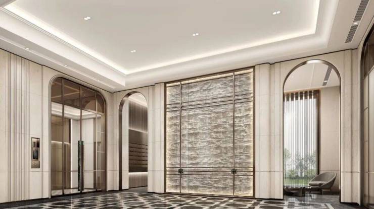 公区设计,巧妙融入百乐门印象、沪西电影院等文化元素,将过去记忆植入场景。嘉佩乐酒店式门庭、琉璃光廊式车库、海派人文哲思花园,以“深度酒店化”营造归家艺术之旅。