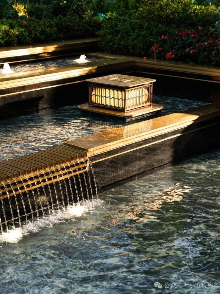 景观水池奢石从安哥拉黑到普拉达绿,使得空间更加灵动而雅致。