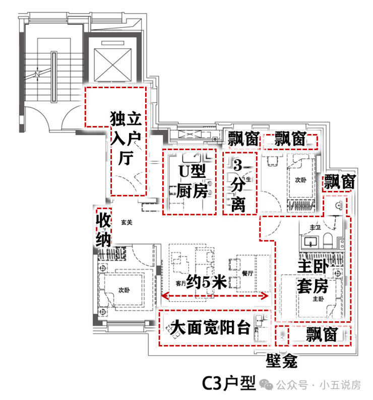 项目建面约102㎡户型打造了接近豪宅大平层的居住体验!