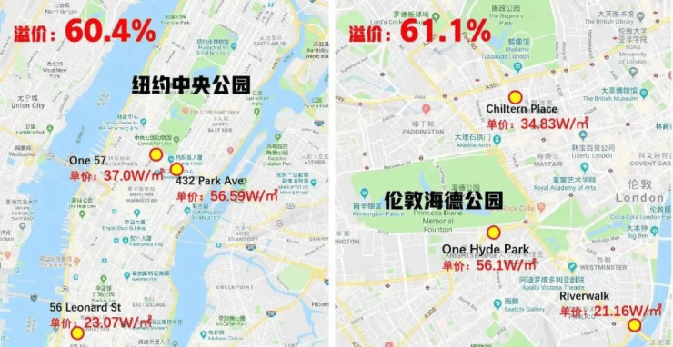 比如纽约中央公园和伦敦海德公园附近的豪宅,都比同地段其他豪宅更有价格优势。