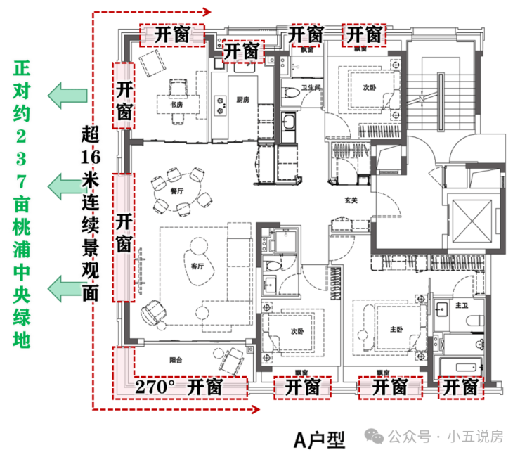 北-东-南3面景观!270°无界景观阳台!超16米连续西向景观面!西侧整块玻璃约8.2㎡!高区部分房源视野延伸近6公里!