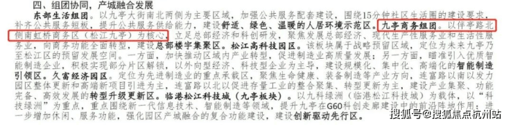 另一方面是内部,九亭教育资源在补强,并依托G60科创走廊先导区优势,将打造“四大产业”新高地。