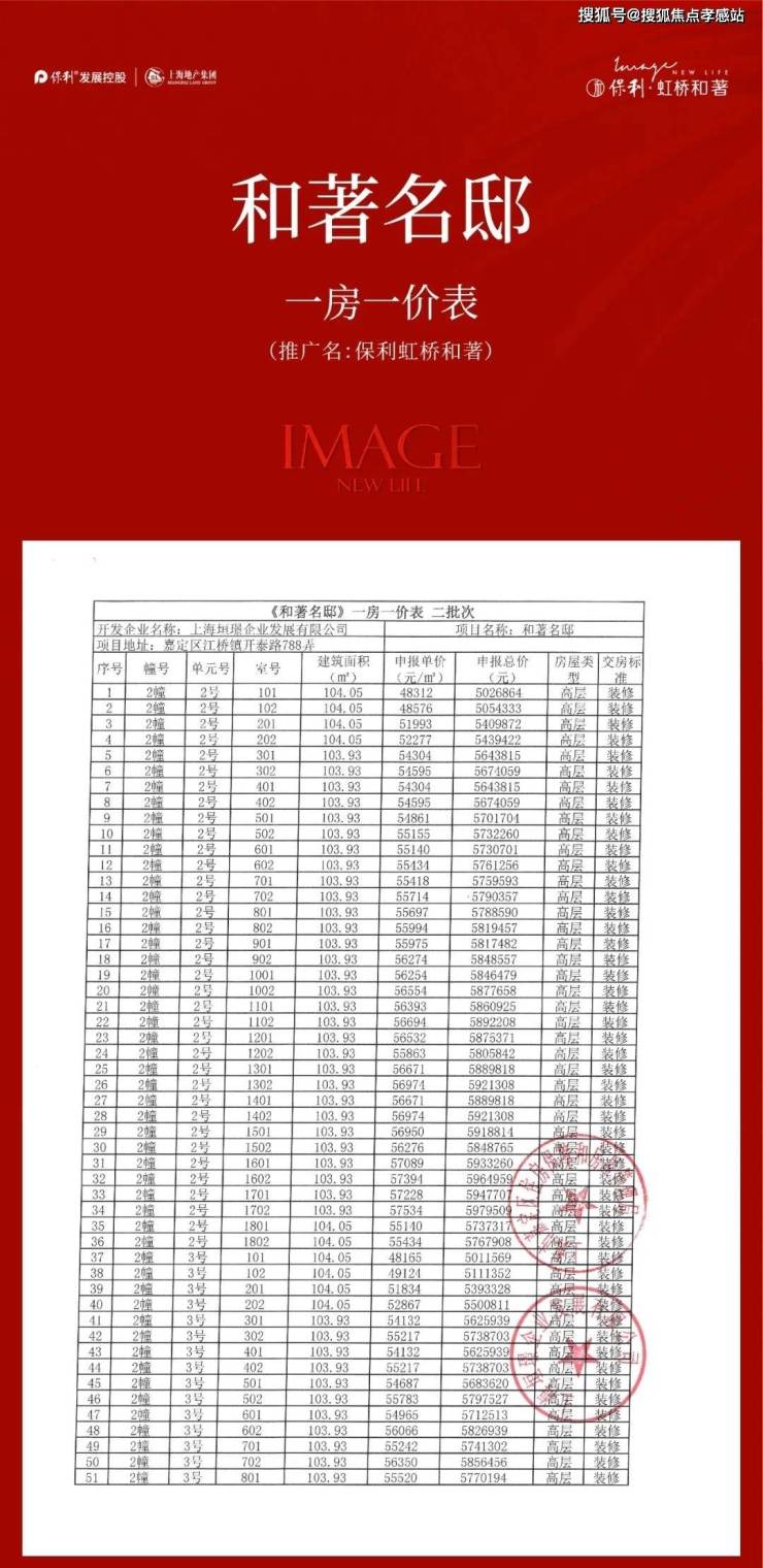 保利·虹桥和著售楼处热线:400-9966-940✅✅新房多维度 优秀选手嘉定「保保利·虹桥和著售楼处热线:400-9966-940✅✅」耀眼启幕14号“豪宅线” 200米真地铁盘建筑面积约为104-128㎡奢阔3-4房550W级起 新房置业优选火热认购中!一房一价表如下: