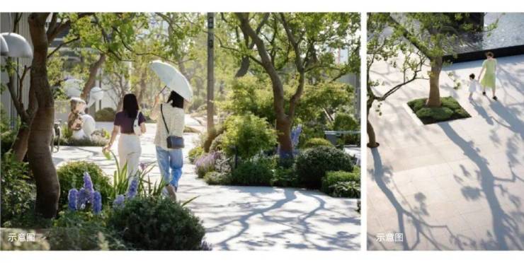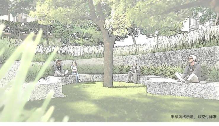 沁香园旁边绿化轴上,长着十几棵老香樟,项目将保留部分香樟并以此为绿轴,通过改造以及功能节点的设计,在树、建筑、艺术、空间相互贯穿式的交融场景中,以休闲、运动、社交为目的,形成香樟聚场,让人们可以在这延伸出生活的无限美好。