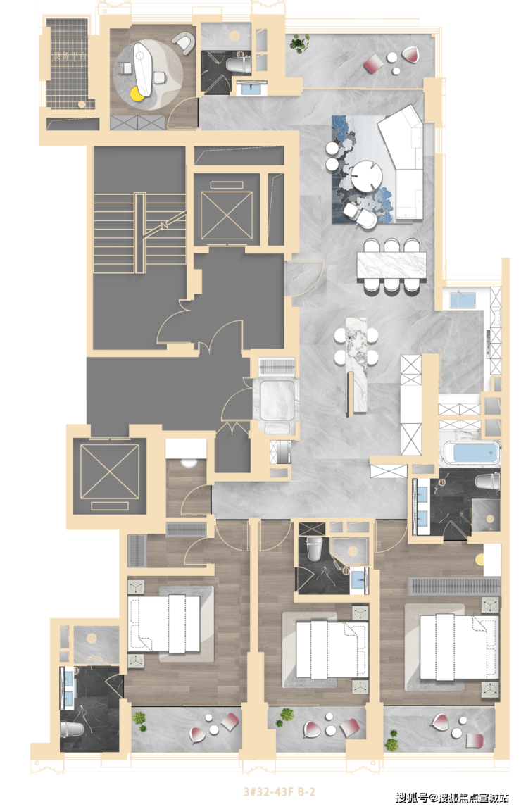 建面约193、237㎡为类一梯一户设计,拥独立门厅;建面约303㎡ 标配2梯1户、私享梯厅,纯粹的大平层圈层!