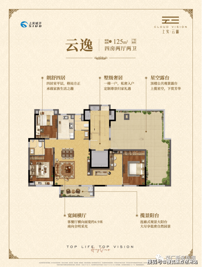 约125㎡四房两厅两卫, 一梯一户设计 ,专属入户空间。