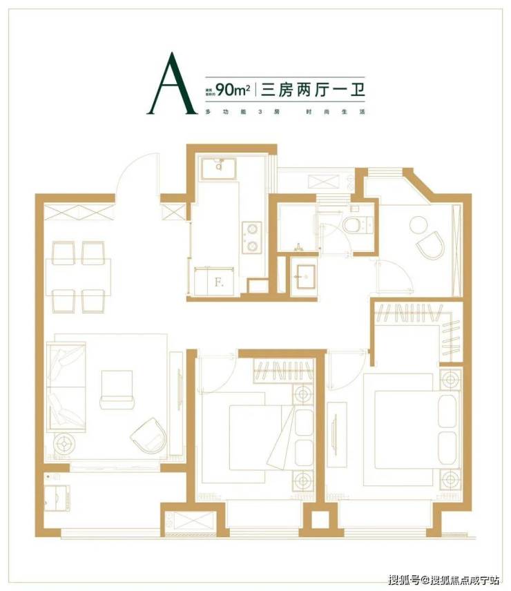 90㎡三房:南向双卧+灵动书房,总价258-311万;