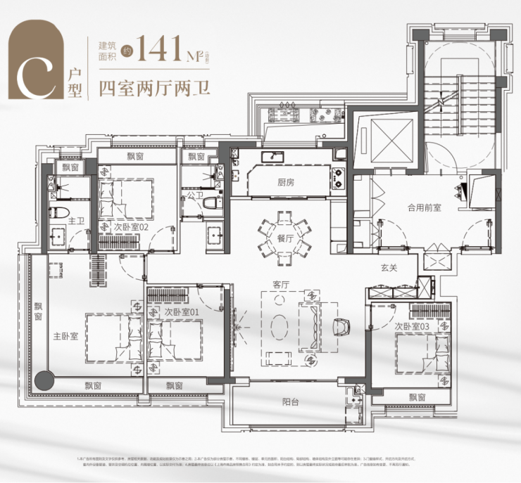 全屋足足四个飘窗设计,带来更多的采光和更好的通风,让你无需羡慕老洋房的采光。