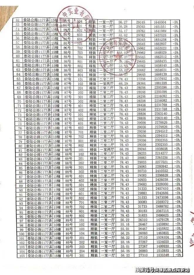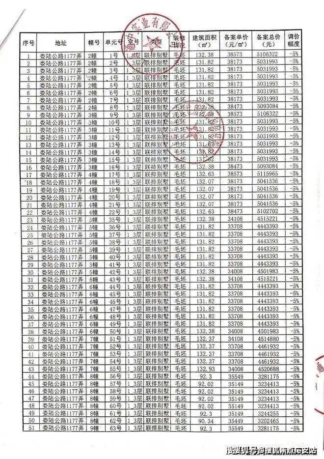 项目一房一价表: