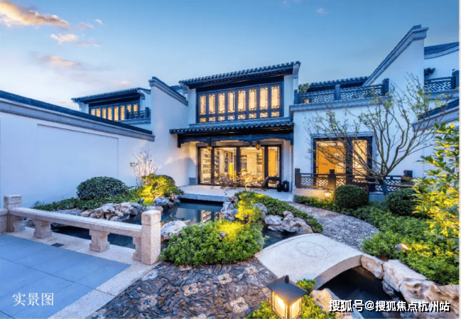 大宅后花园,采用了围合式的建筑结构,有泗水连廊、有金鱼戏水,彰显中式大宅的典雅大气。