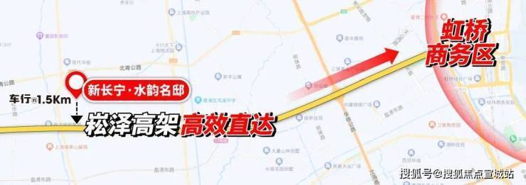 从家门口出发到崧泽高架赵重公路出入口仅约1.5公里,上高架后没有红绿灯直通大虹桥核心。整体只要6个红绿灯,自驾非常高效。