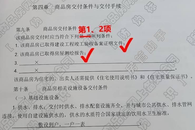 6.房屋交付,对照合同条款去收房,仅交钥匙不算交付。如果不满足购房合同约定的交付条件,购房人可以拒绝收房并要求开发商整改,达到交付条件后再签收。