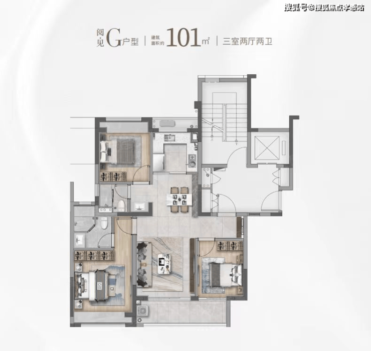 建面约101㎡的F和G户型都是市面上备受认可的飞机经典款户型。