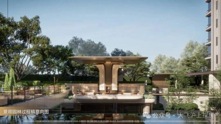在景观营造上,以英国邱园及德寇特花园为灵感蓝本,打造“东韵西境”的立体园林约3000㎡立体鎏金泛会所及架空层,隐于绿意之间,涵盖恒温泳池、瑜伽室等功能空间,为高净值人群圈层提供交流场域。