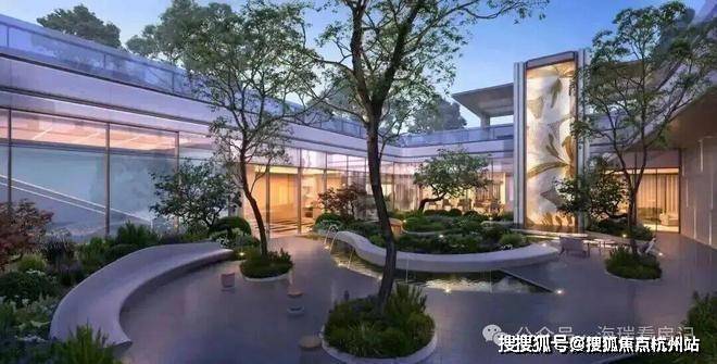 穿过会所,便步入 层层叠水、绿意环绕的下沉庭院