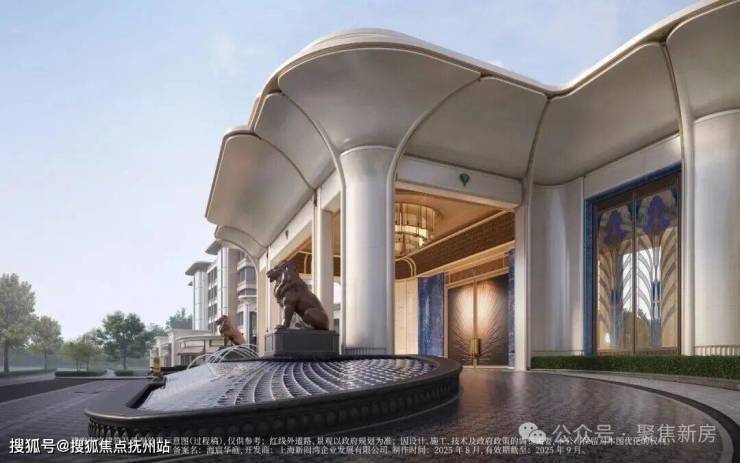 项目大门口标配的铜狮庄严中透出几分摩登腔调。主入口的铜艺精雕大门上,建发特别邀请了百年品牌“老凤祥”掐丝珐琅非遗大师陈徐奇,以掐丝珐琅工艺打造门钹,精致典雅。门厅以上海的标志白玉兰为造型,勾勒出摩登与飘逸并存的气质。