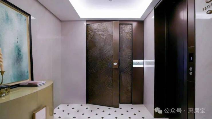 从入户开始就拉满仪式感,类梯入户设计,搭配专属电梯厅,进门即享私密过渡空间,避免了传统户型“电梯厅共用”的尴尬。
