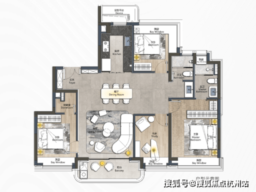 全系4000 元 /㎡精装标准,搭载博世、科勒、日立、百朗等一线品牌,配置中央空调、地暖、新风三大件,十五大全屋智控系统,细节彰显奢适。