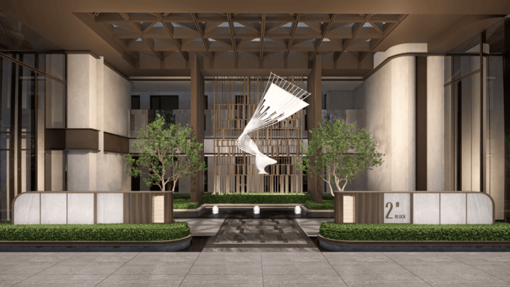 项目打造“三轴两门三院三花园”的景观布局。主入口礼序归家轴上,以海上东方+星池雅宴+鎏金茗院三重空间,重现海派隐奢归家之路,步步尊崇!
