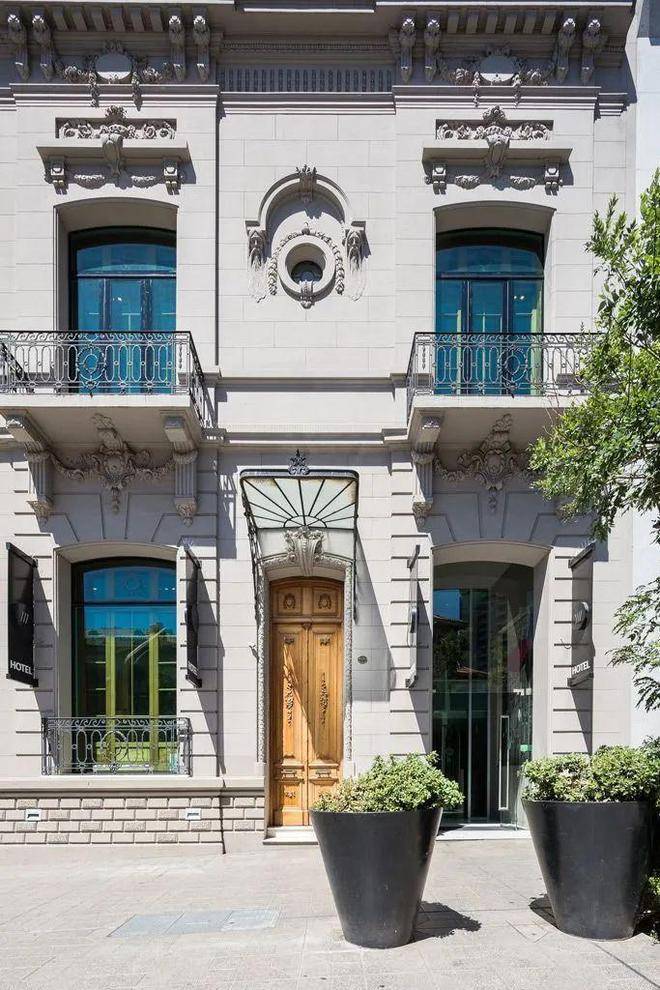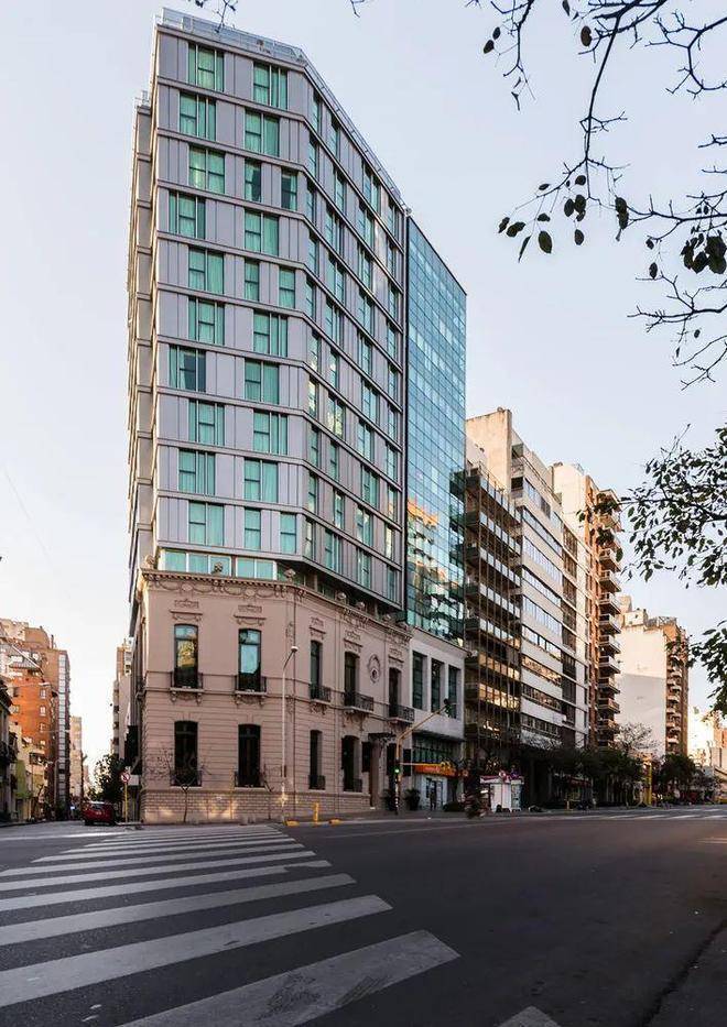 入后,可抵达酒店大堂,大堂因内部双层挑高而更为重要,在空间和物理上均与一层的早餐区相连。值得注意的是,除了伊里戈延大道一侧的立面和空间外,建筑原有的楼梯在内部被保留下来,兼具实用功能和雕塑感。由于其位置与大堂的双层挑高相契合,为空间注入了活力,并凸显了其建筑特质。