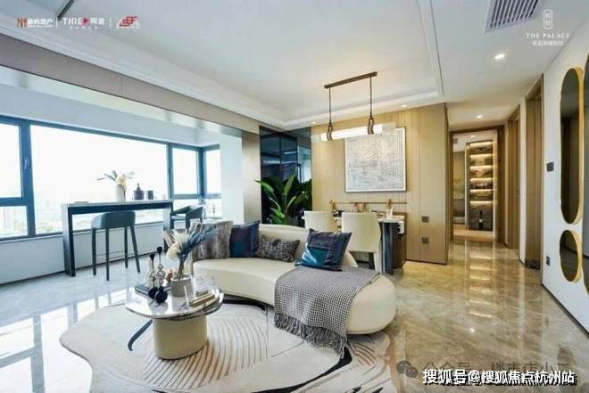 约105㎡的横厅户型则由柏悦酒店设计师打造,被称为“社交型横厅”。通过电动雾化玻璃,客厅可秒变50㎡的聚会空间或独立书房,灵活适应不同生活场景。