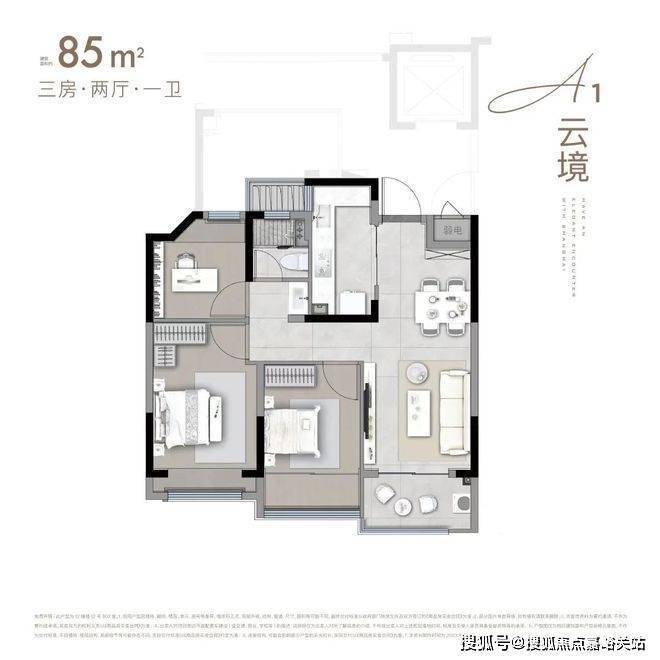 我们先来看建面约85㎡户型: